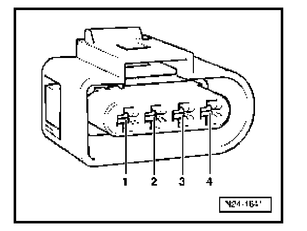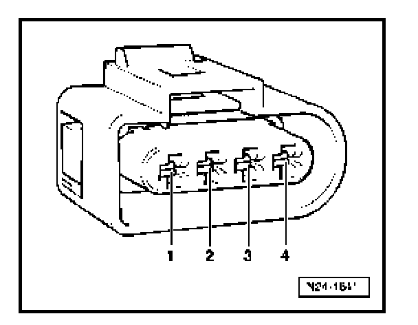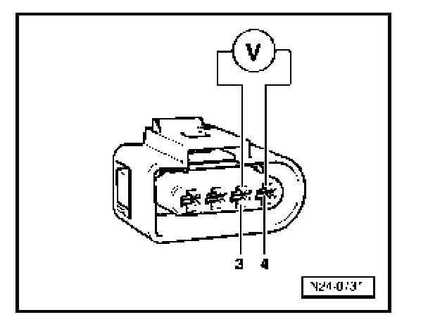 - Connect multimeter for voltage measurement to terminals 3 + 4 of connector to Engine Control Module (ECM) and measure primary voltage. Specified value: 0.400 to 0.500 Volts