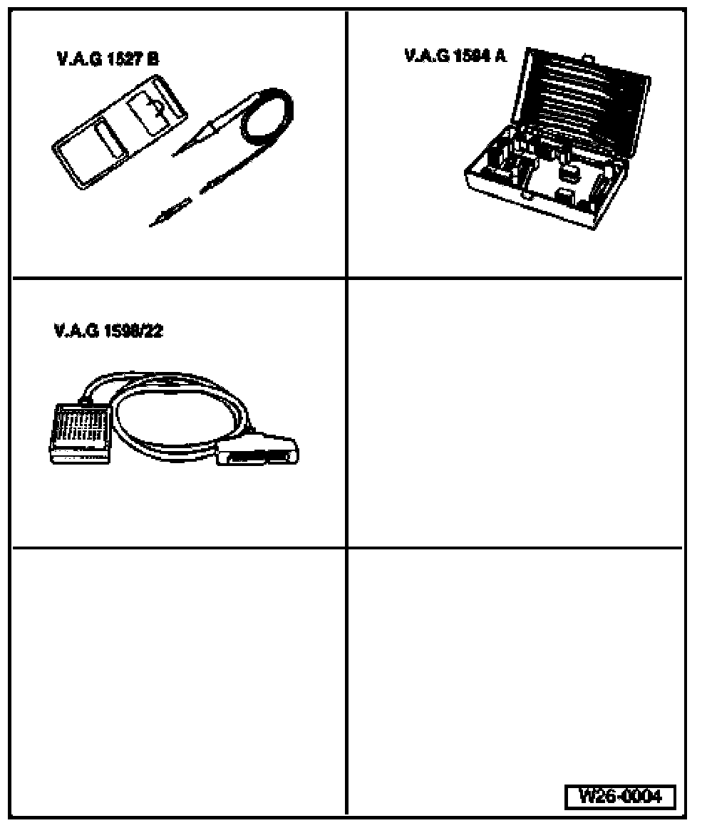 - Bridge Test Box sockets with auxiliary cables from VAG1 594A adapter set: