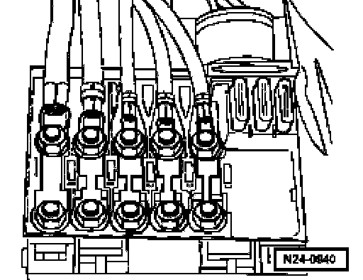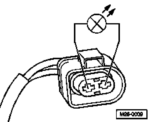 - Connect VAG1527 B Voltage Tester to terminals of wiring connector using jumper wires from VW 1594 adapter kit.