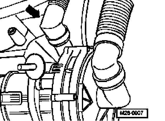 - Remove pressure hose from secondary air pump motor -arrow-.
