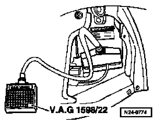 - For Engine Code AEG connect test box VAG1598/22 to ECM wiring harness.