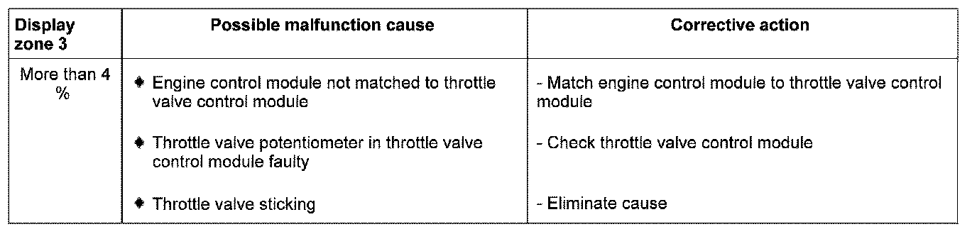 Evaluating display group 10, display zone 3 - Throttle valve angle