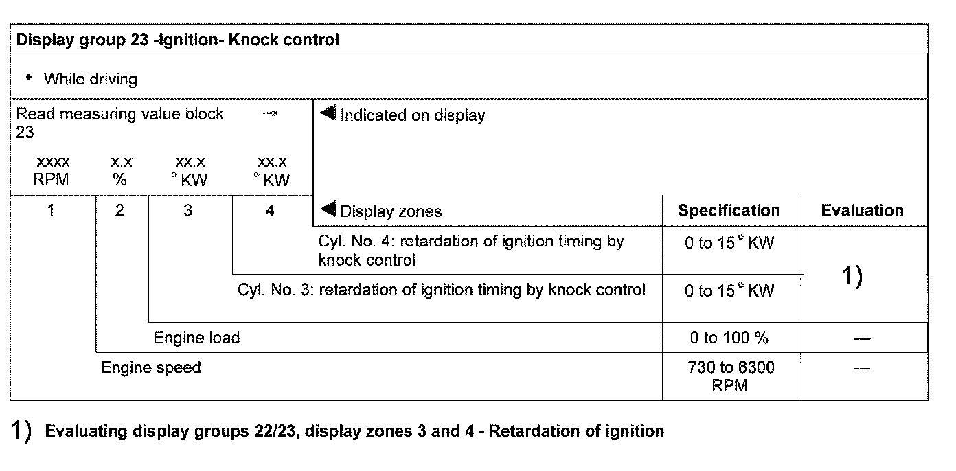 Evaluating display groups 22/23, display zones 3 and 4 - Retardation of ignition