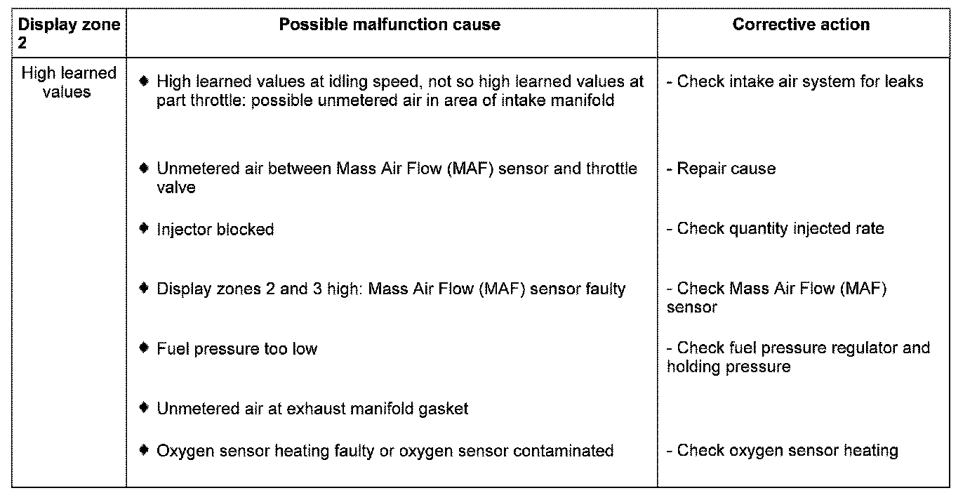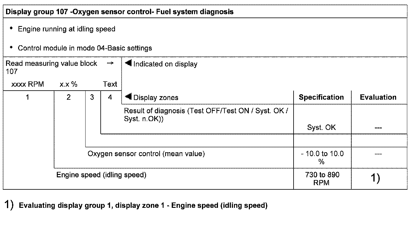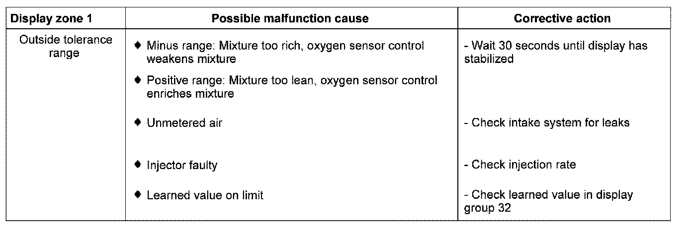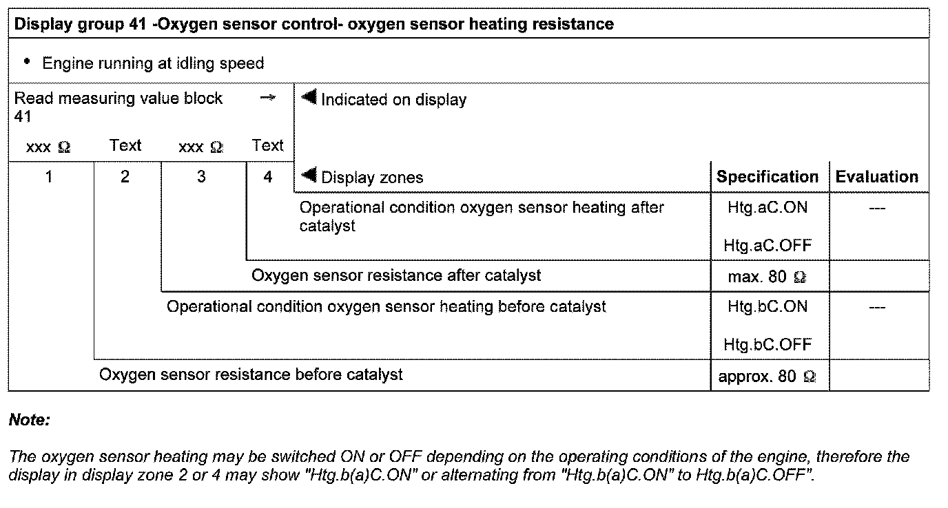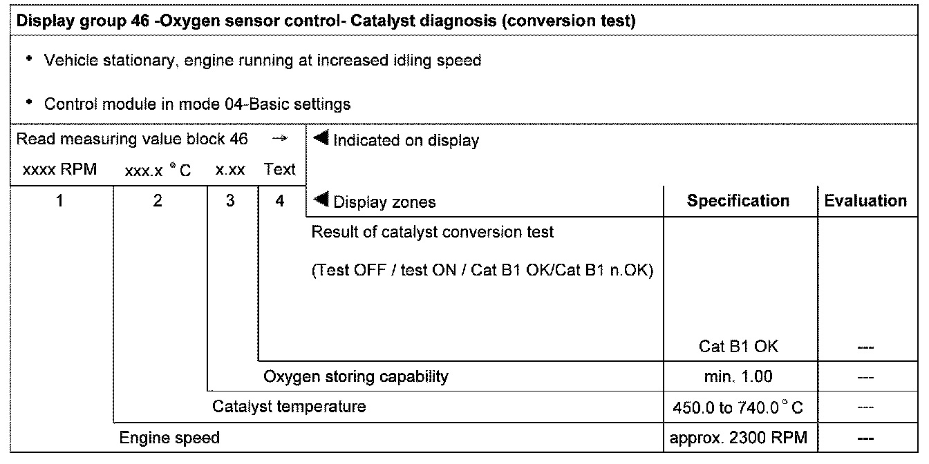 Evaluating display group 33, display zone 1 - Oxygen sensor control before catalyst