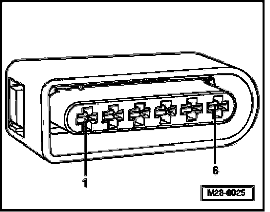 - Check wire between 6-pin connector terminal 6 and Motronic Engine Control Module (ECM) Power Supply Relay -J271- for open circuit according to wiring diagram. Wire resistance: max. 1.5 ohms