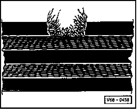 Plastic covered guides show, after strain on belt system, very fine parallel scoring (when belt was fastened during an accident). Wear which has been brought about by frequent belt use can be recognized by smooth signs of wear which are free of scoring.