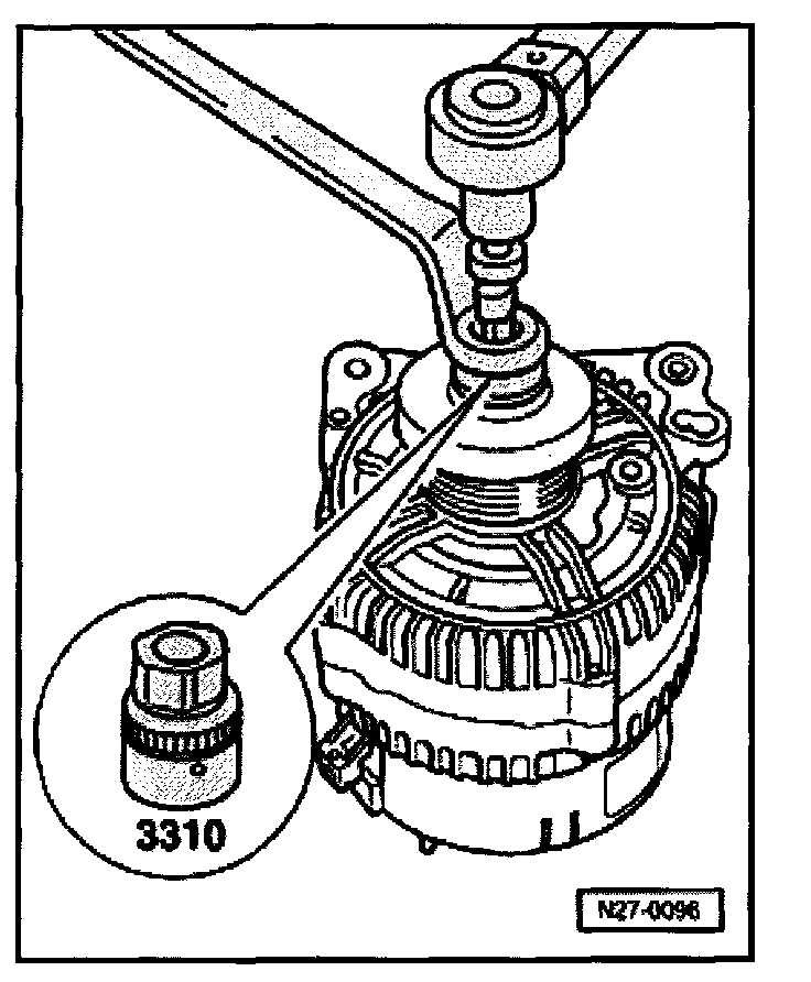 The multi-point socket 3310 is required to loosen and tighten the ribbed belt pulley on the generator.