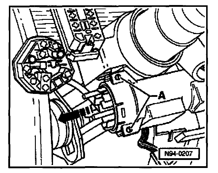 - Loosen two securing screws -A- slightly and pull ignition/starter switch out from steering lock housing in direction shown (arrow).