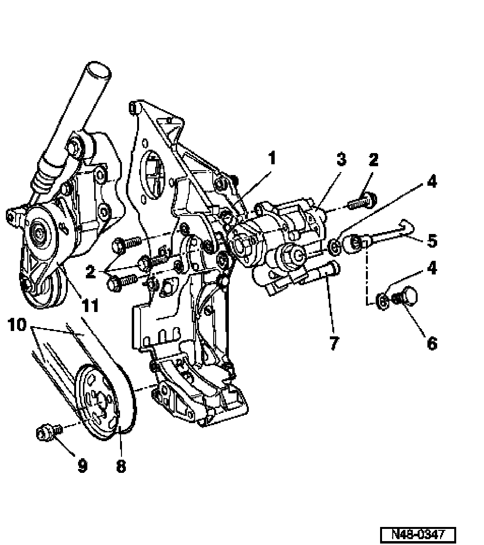 ^ Mark the direction of travel using a crayon or marker before removing the ribbed belt. Reinstalling a used belt in the opposite direction could damage the belt.