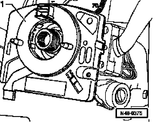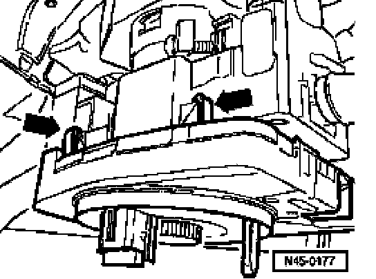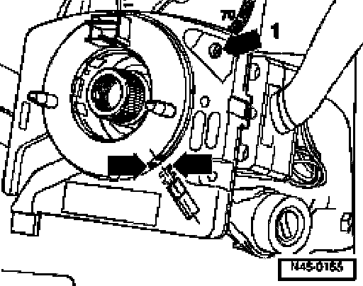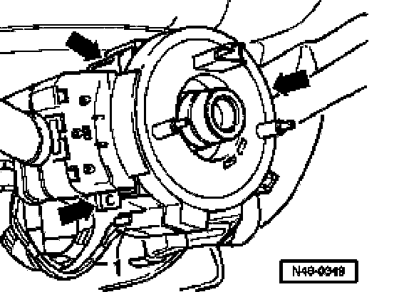 - Release locking tabs -arrows- and pull spiral spring with slip ring off steering column switch.