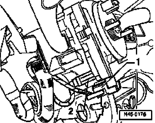 - Slide lock cable -2- on steering lock housing until wire clip -1- engages.