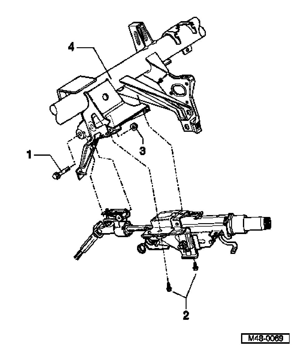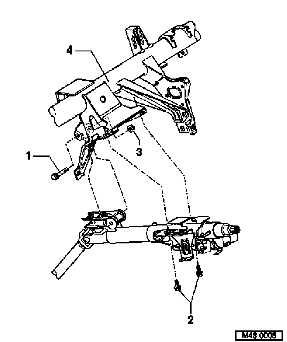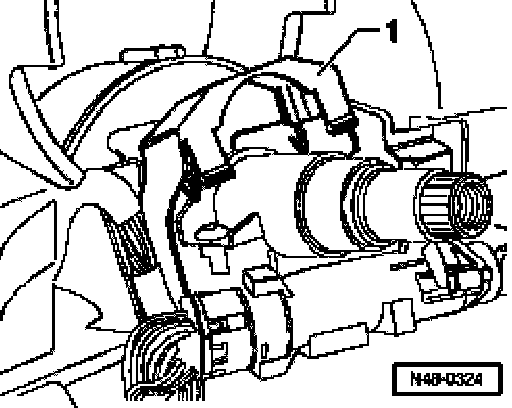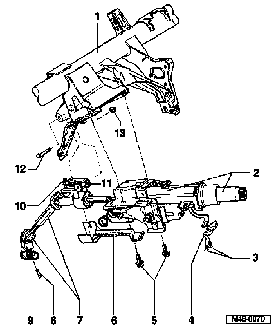 New (replacement) steering columns are secured with a transportation device -6-. This must be removed after installation.