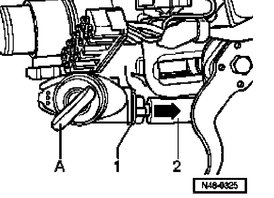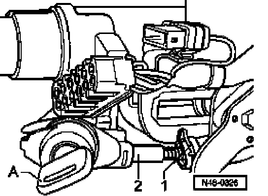 - Remove bolt for steering column switch -arrow- and remove steering column switch.