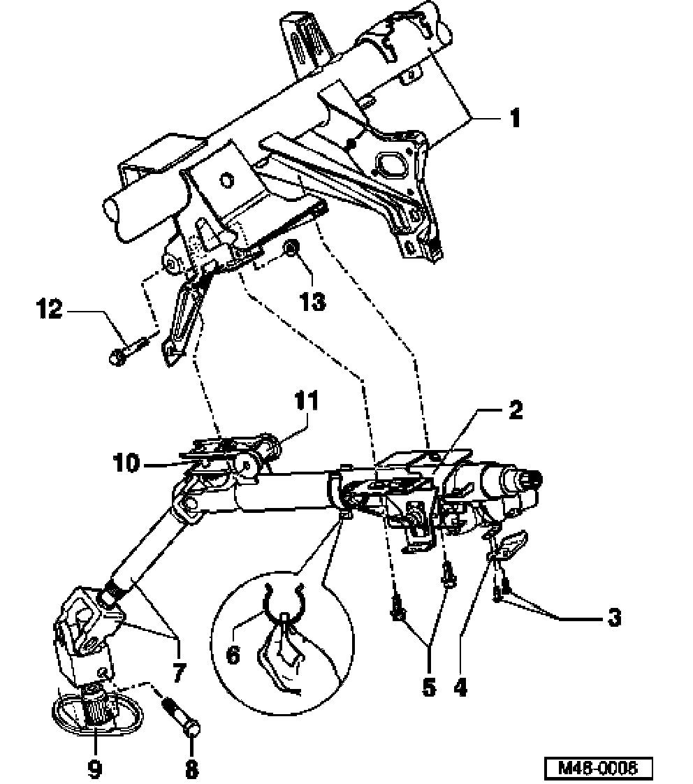 Installing steering column, manufacturer Krupp Presta. Vehicles from m.y. 02.00.