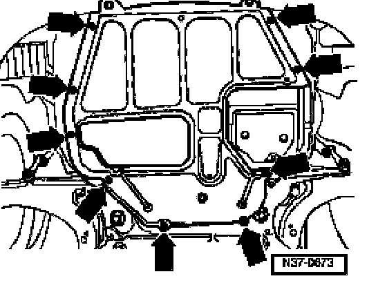 - Remove noise insulation panel -arrows-.