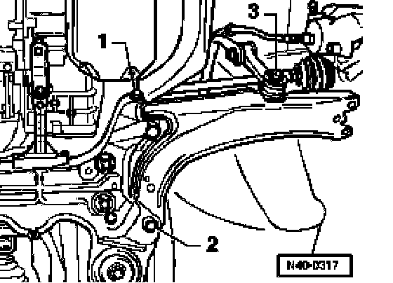 - Remove hex. bolt -3- on control arm.