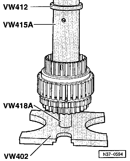 ^ Before pressing on, align VW418 A centrally onto surface for axial needle bearing (this illustration shows -K3-).