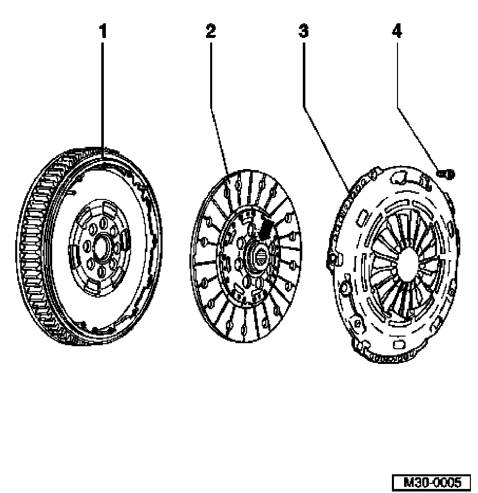 ^ Select correct clutch plate and pressure plate according to parts list and engine code.