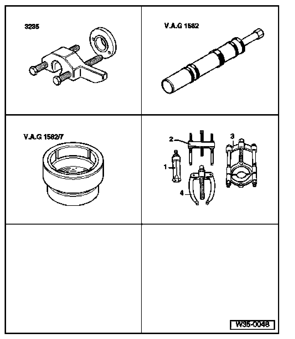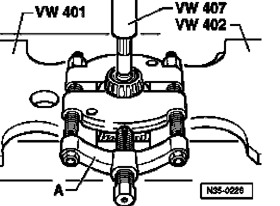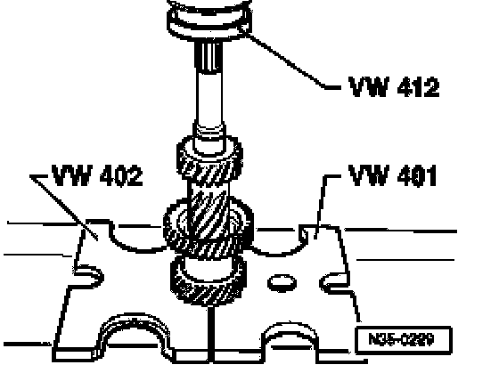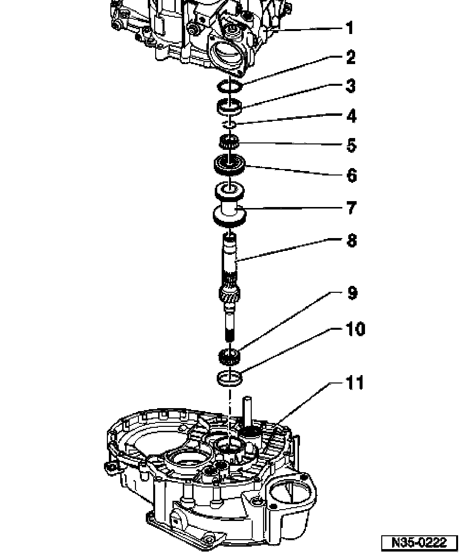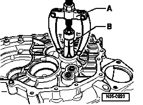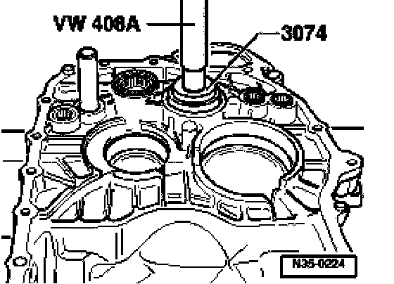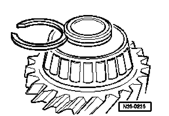 ^ If the position of the tapered roller bearings is affected when exchanging parts, the input shaft must be re-adjusted. See adjustment overview, Refer to Differential, Manual Transaxle,Adjustments, Adjustment Overview