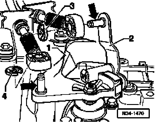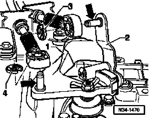 ^ Remove securing clip -4- for gate selector cable from relay lever -2-.