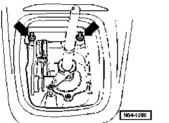 ^ Spread a small quantity of polyurea grease on pins -arrows- of gear shift lever -1- and the relay lever -2-.