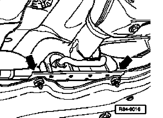 - Unscrew exhaust manifold from subframe -arrows- and unhook it.
