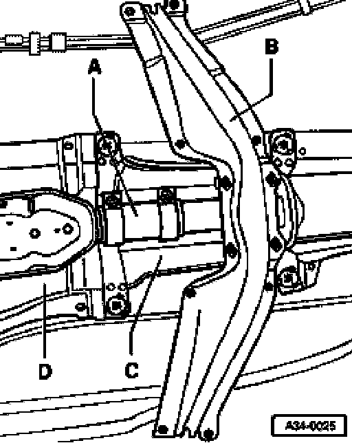 ^ Remove cross support -B- below exhaust system.