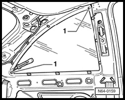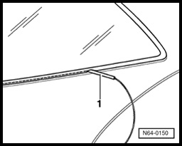 NOTE: When piercing adhesive bead, make sure that sealing lip - 1 - at window front edge is not also pierced.