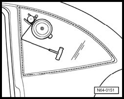 - Push cutting cord through adhesive sealant into vehicle interior using awl (from V.A.G 1474).