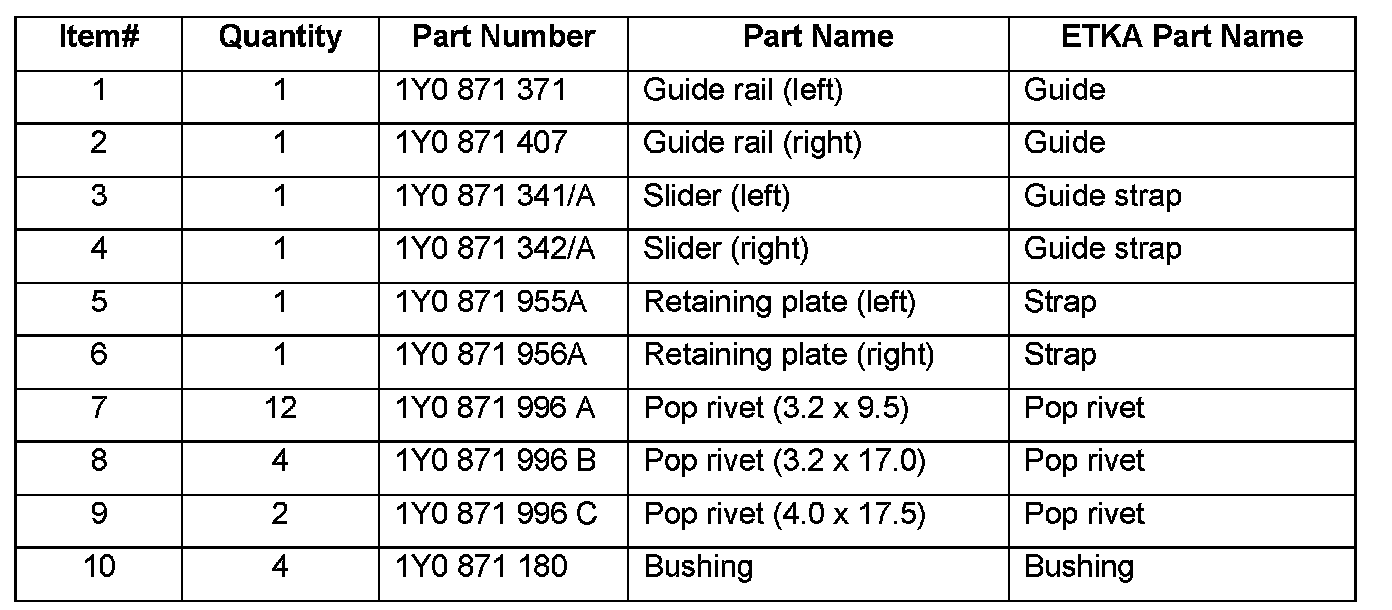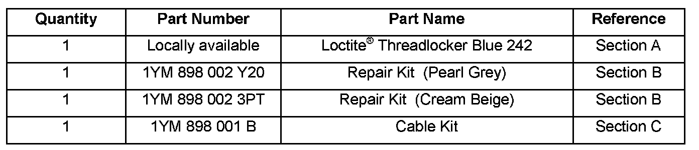 Each repair kit (1YM 898 002 Y20/3PT) contains the following parts: