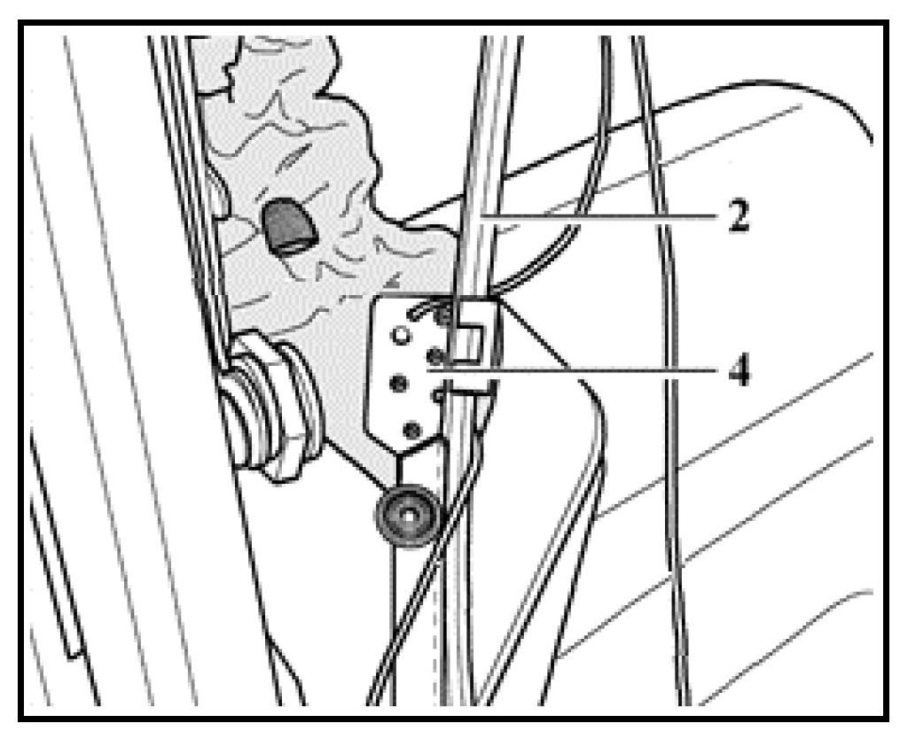- Long upper cable -2- is then routed behind cross rail and over extended element and through highest and rearmost cable guide (when observing frame from outside of vehicle)