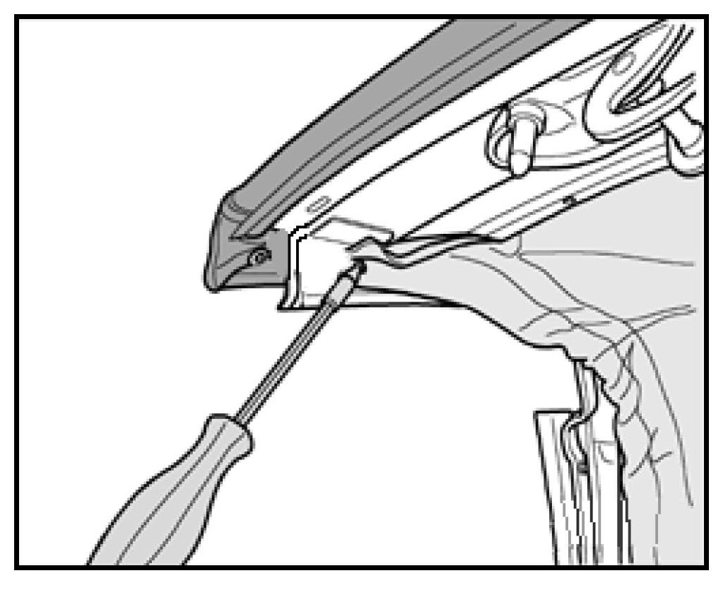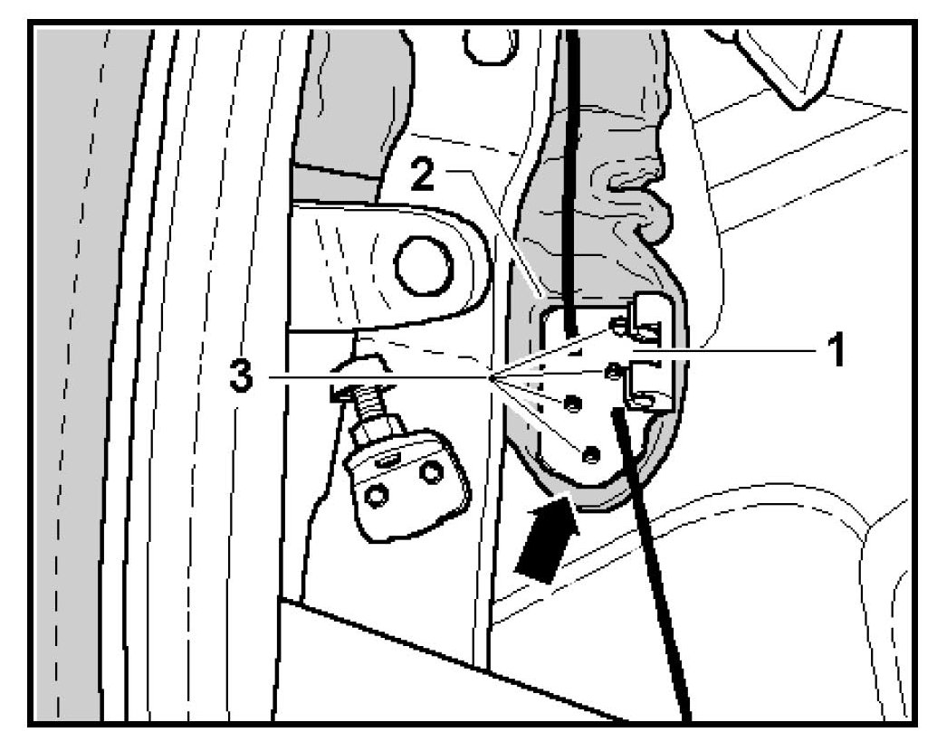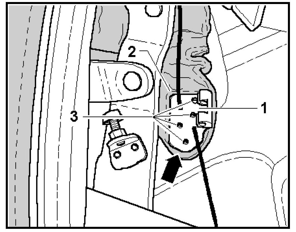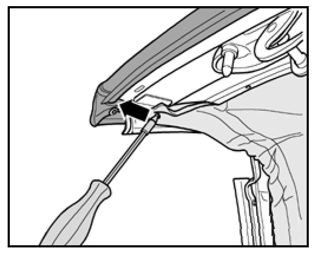 - Move headlining aside and remove rivet -arrow- attaching cable guide (with bushing) or elastic strap to the frame