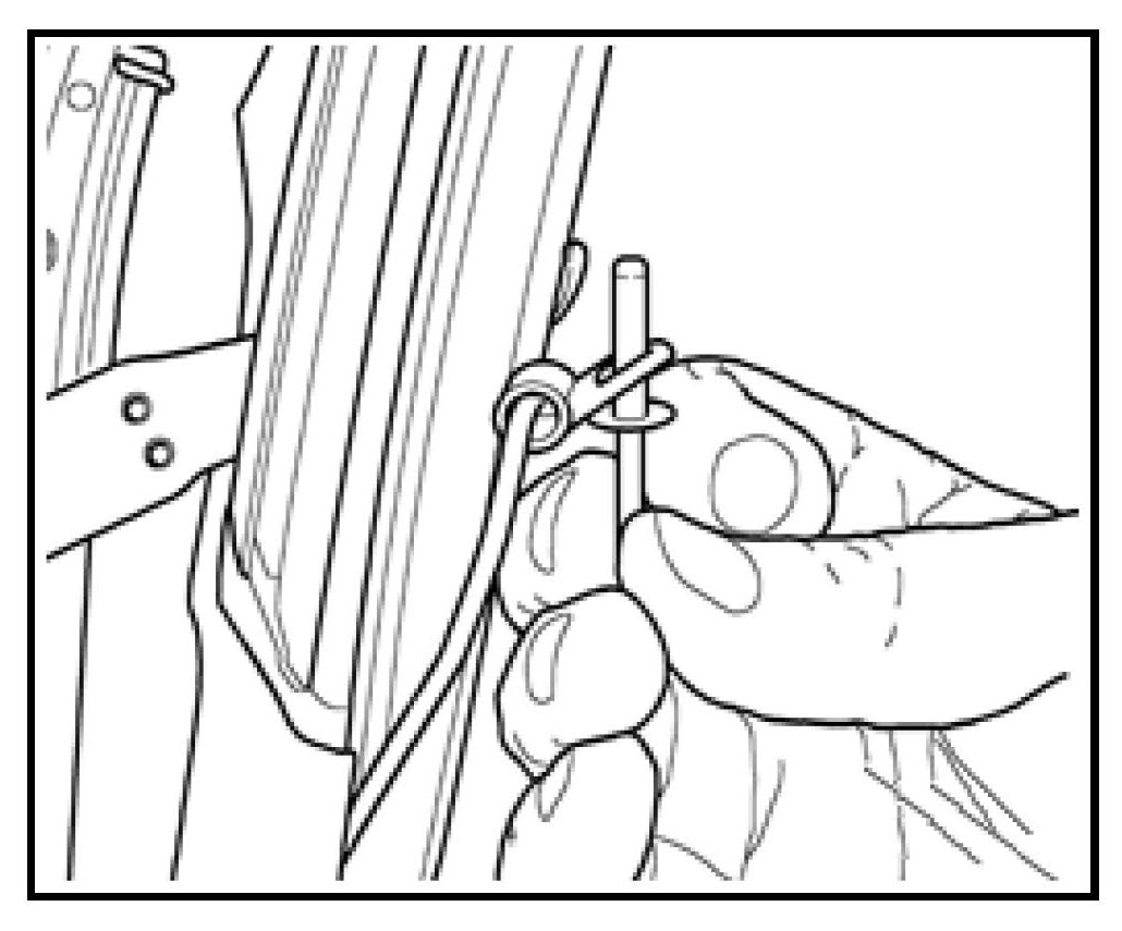 - Remove rivet -2- securing eyelet on the long upper cable