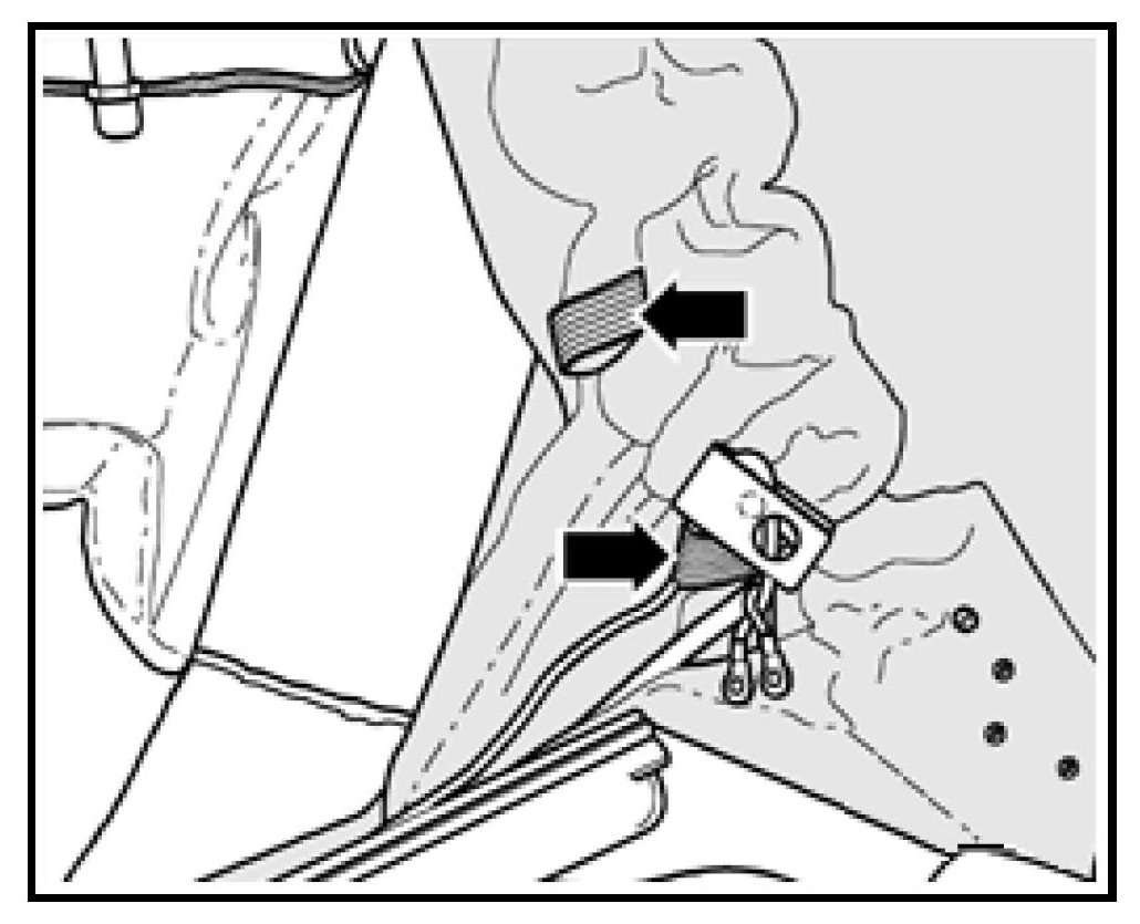 NOTE: The rivet -arrow A- may not have an eyelet with cable as shown in the illustration