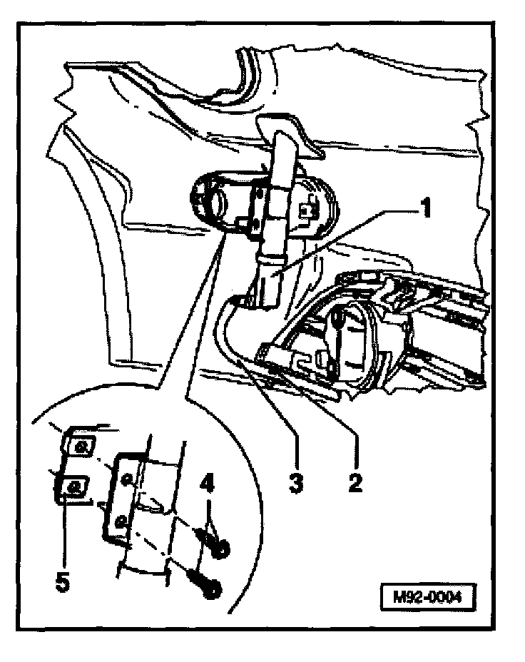 - Unclip headlight washer system hose -3- from hose clips -2-.