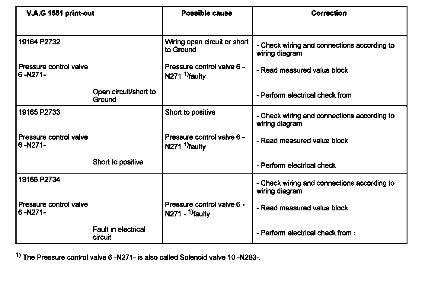 Pressure control valve 6 -N271-/Fault in electrical Circuit