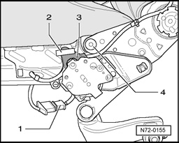 - Remove fitting bolts - 4 - on both sides of seat and remove backrest.