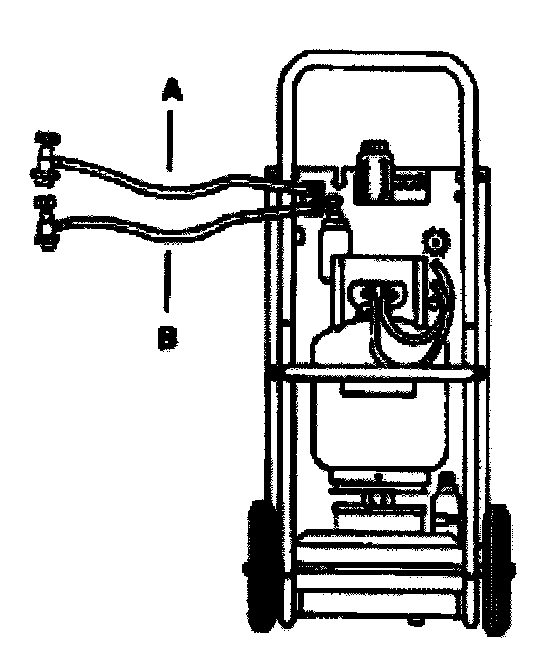 - Connect blue low-pressure hose -B- of refrigerant recovery/recycling/recharging unit to low side fitting on vehicle and open coupler valve.