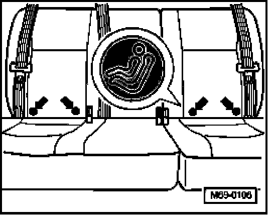 Vehicles manufactured as of January 2001 are equipped with buttons -at arrows- to identify the rear lower anchor points.
