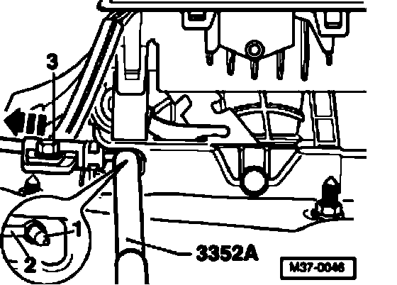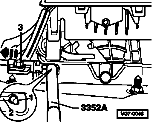 - Tighten bolt -3- on support mounting to 10 Nm.
