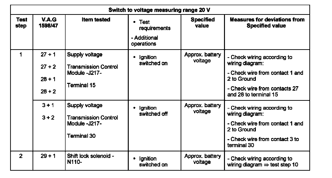 Control Module Pinout Values - 6 Speed Automatic 09G