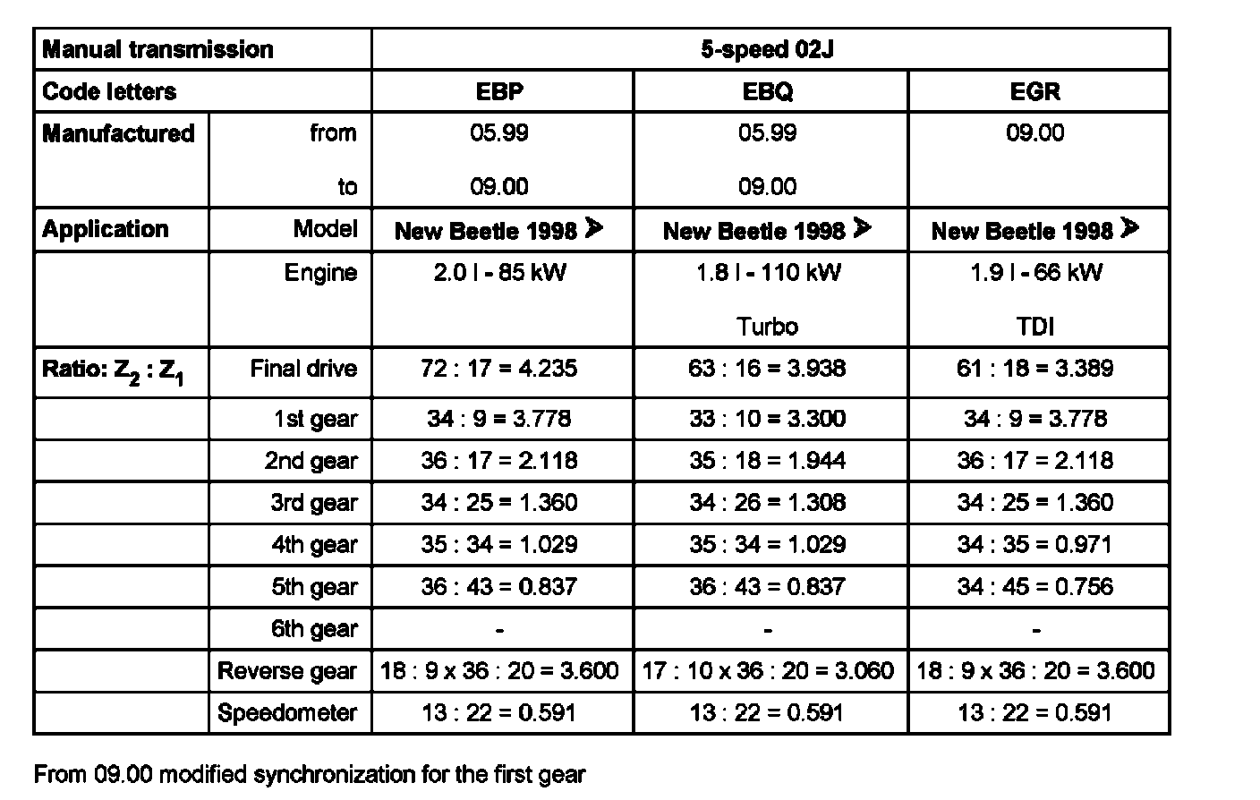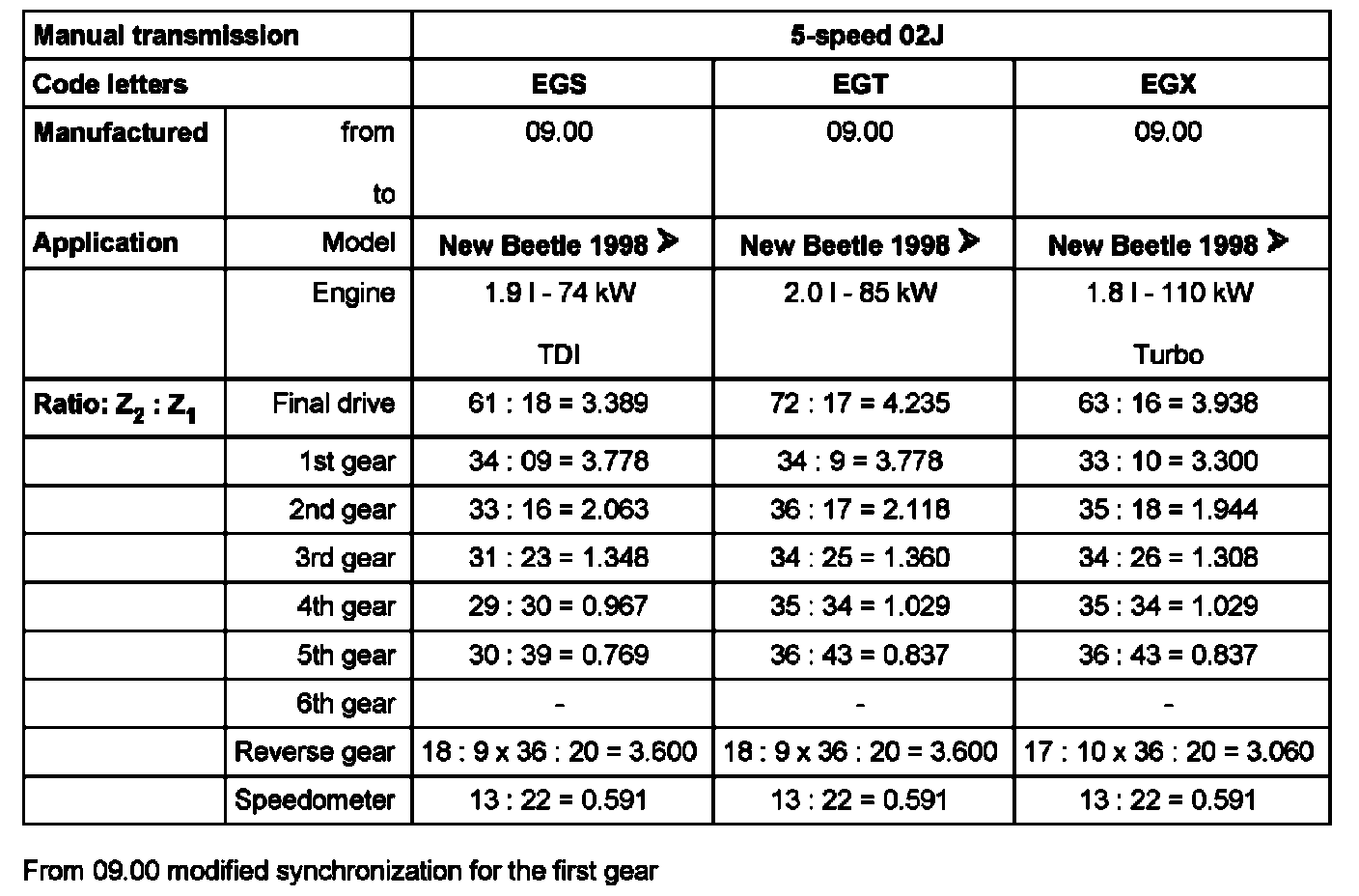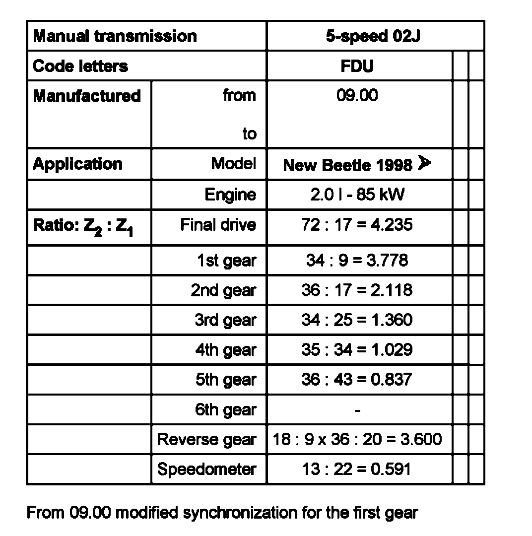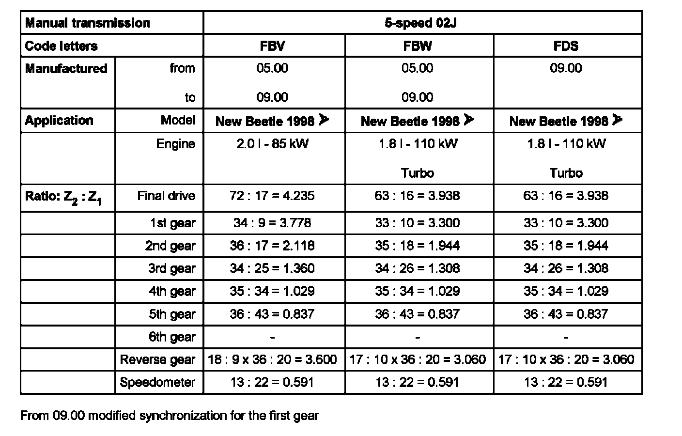 From 09 00 modified synchronization for the first gear