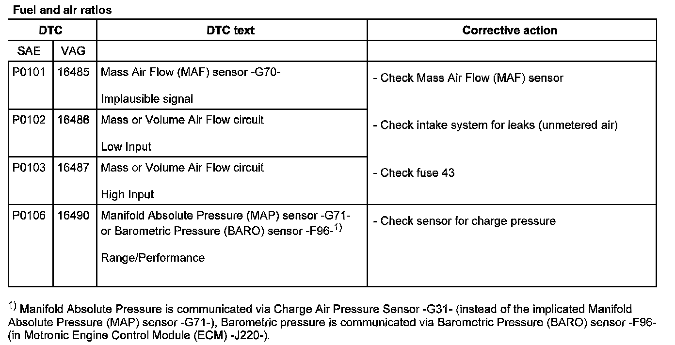 DTC P0101 - P0106: