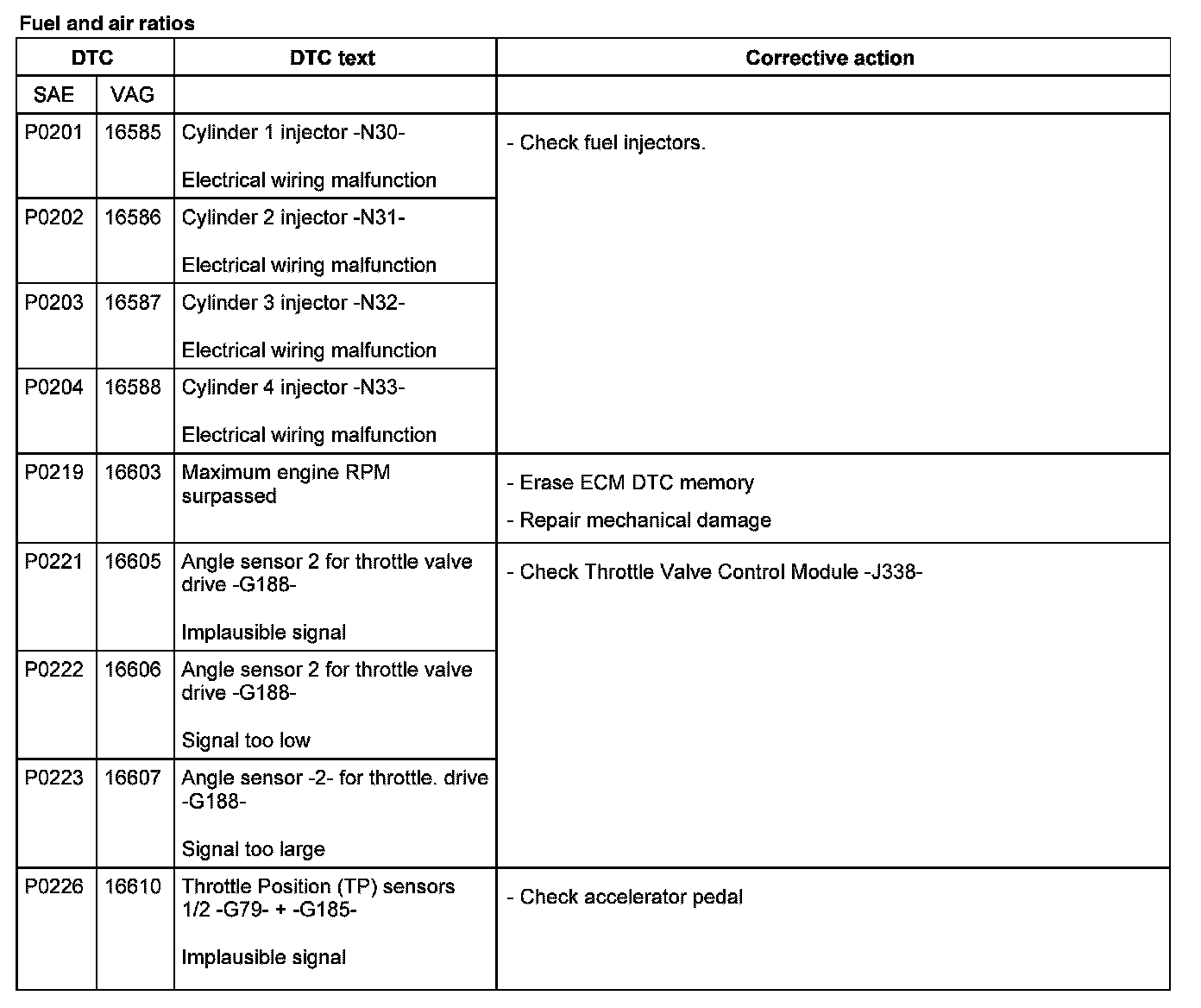 DTC P0201 - P0226: