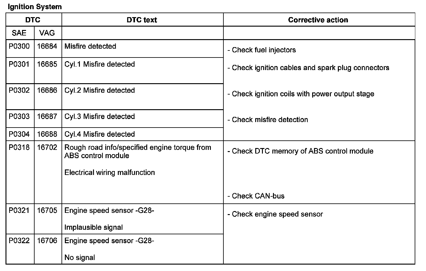 DTC P0300 - P0322: