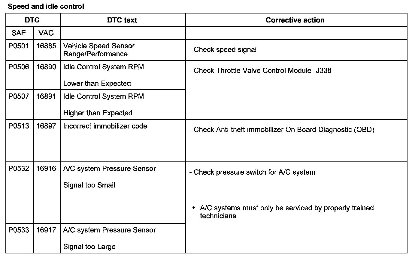 DTC P0501 - P0533: