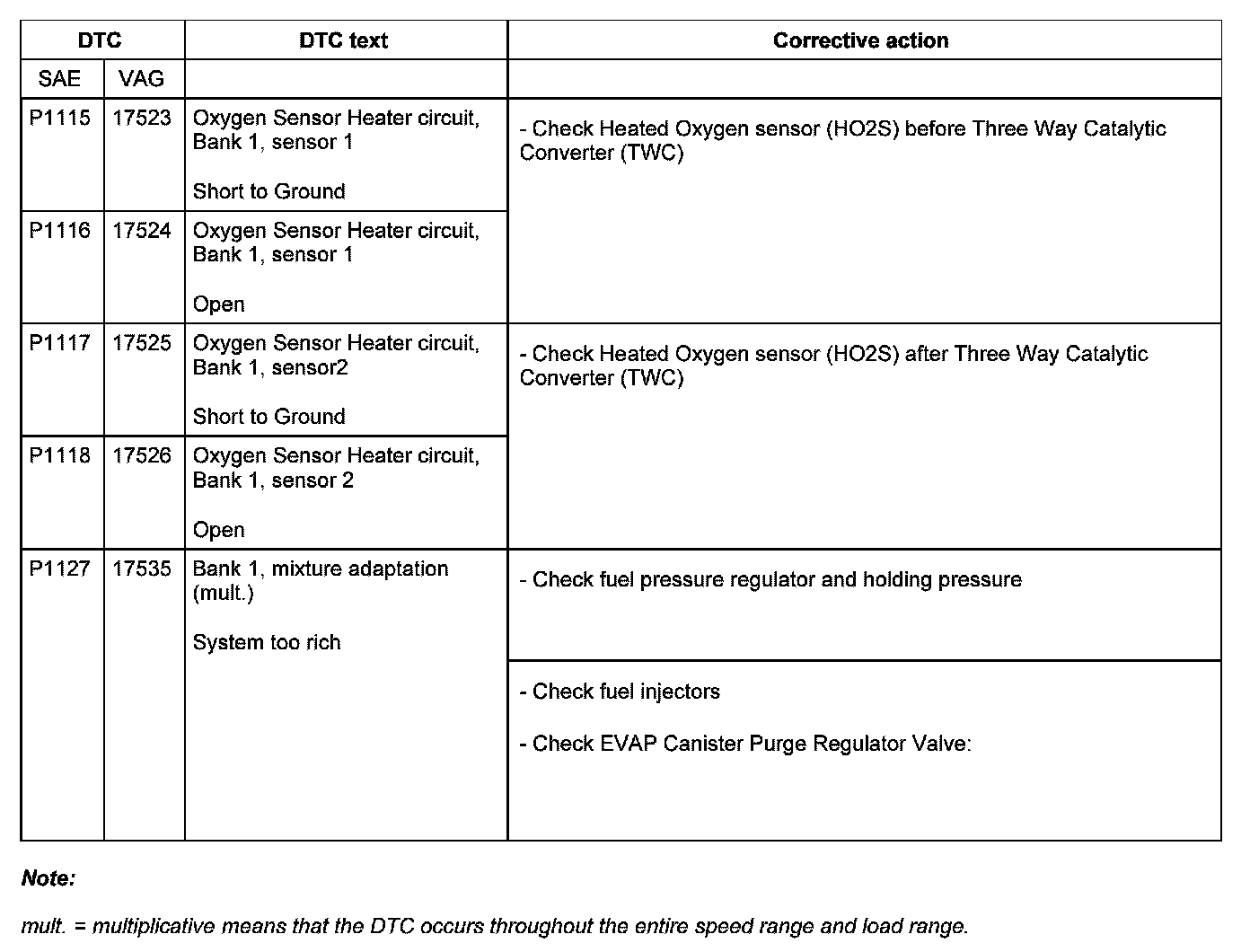 DTC P1115 - P1127: