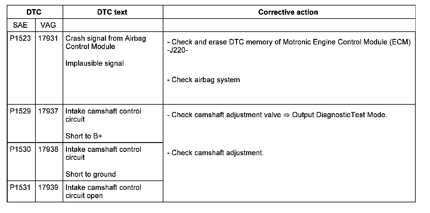 DTC P1523 - P1531: