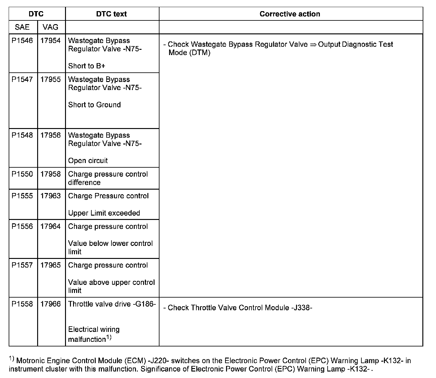 DTC P1546 - 1558: