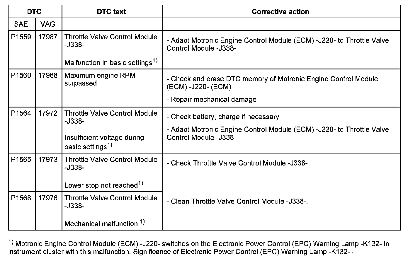 DTC P1559 - P1568: